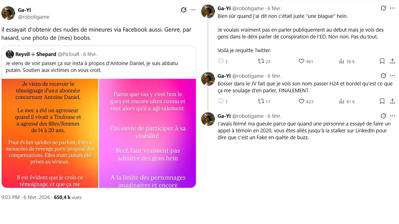 Le 6 février à 21h03, l'utilisatrice @robotigame déclare sur X (Twitter) après avoir vu les premières accusations :
