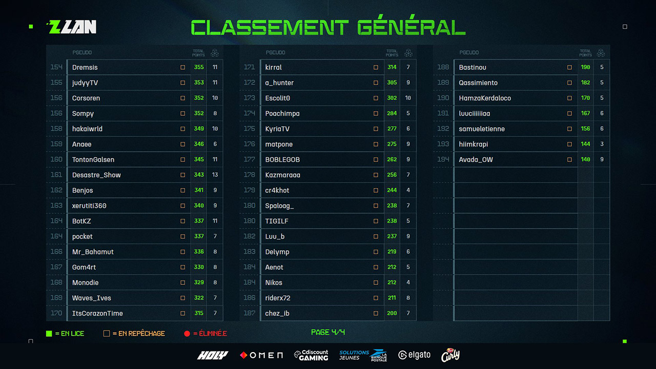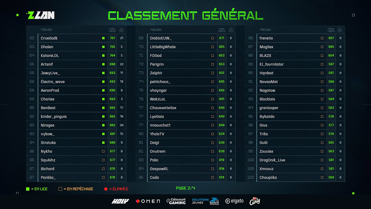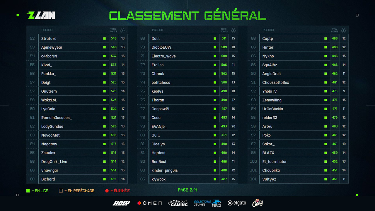 Le cashprize de cette année est de 52 024 € avec une répartition pour les 8 meilleurs joueurs de la ZLAN 2024.