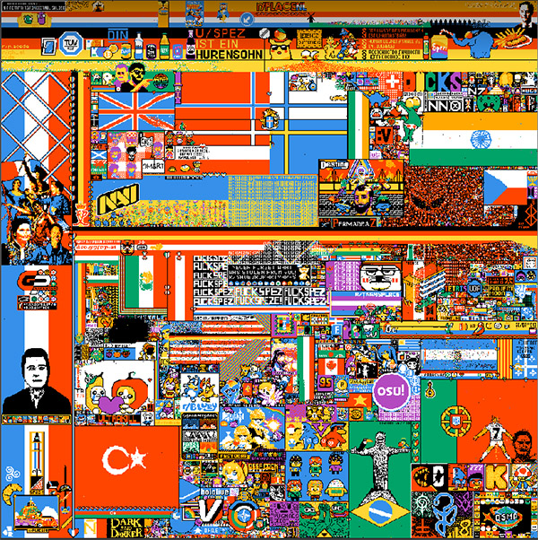 Le r/Place est une expérience sociale sur le site Reddit où chaque utilisateur peut mettre un pixel de couleur toutes les 3 à 5 minutes sur une immense toile en ligne. Le but est de voir comment évolue cette fresque avec la créativité des personnes et les différentes communautés.